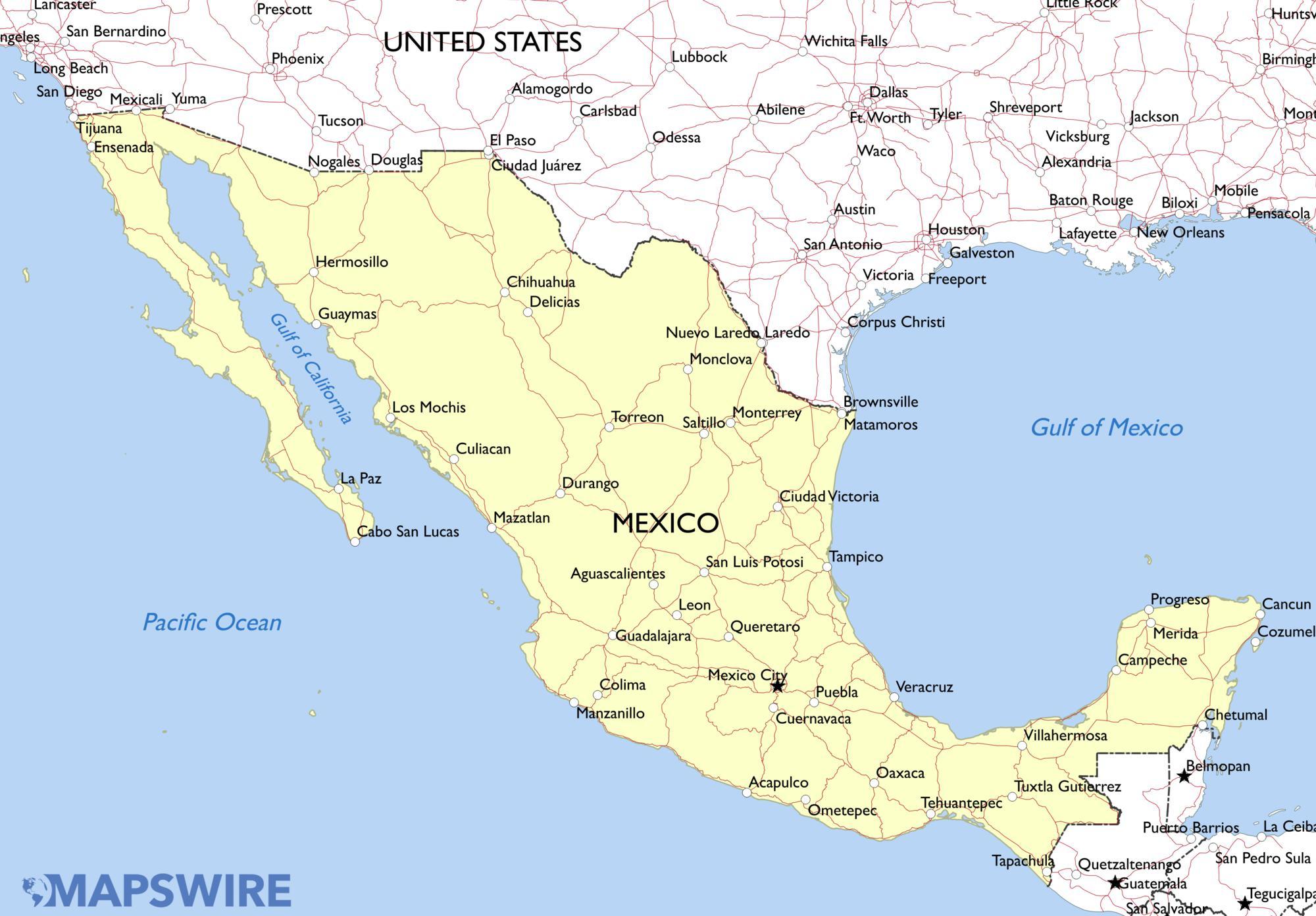 Kaart van Mexiko storm. Mexiko storm kaart (Sentraal-Amerika - suid-Amerika) te druk. Mexiko storm kaart (Sentraal-Amerika - suid-Amerika) af te laai.